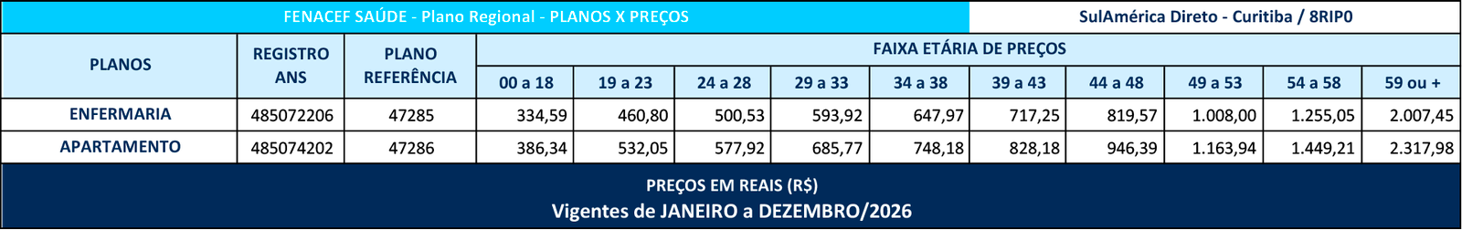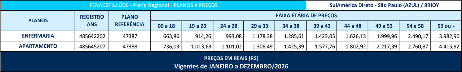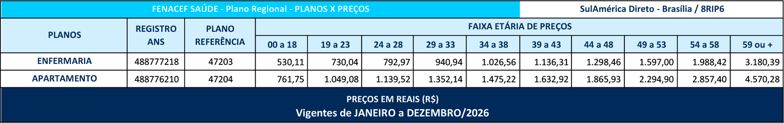 A Operadora dos Produtos disponibilizados pelo FENACEF SAÚDE aos seus Associados é a Sul América Companhia de Seguro Saúde, classificada como Seguradora Especializada em Seguro Saúde, inscrita no CNPJ 01.685.053/0001-56 e Registro na ANS nº 00624-6.