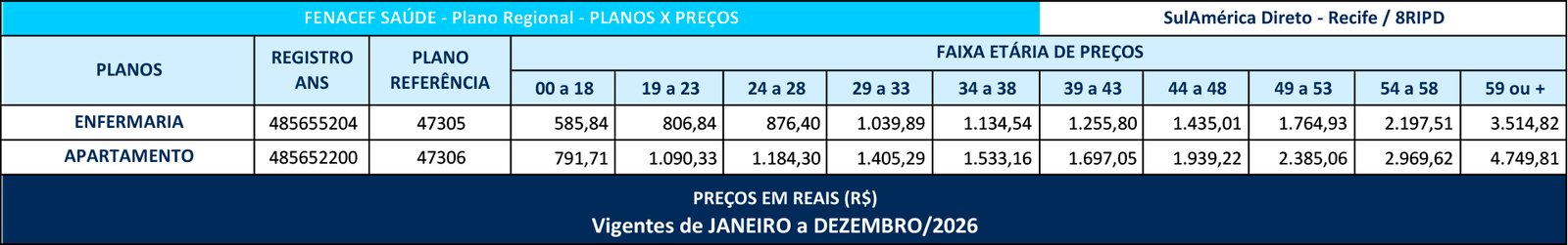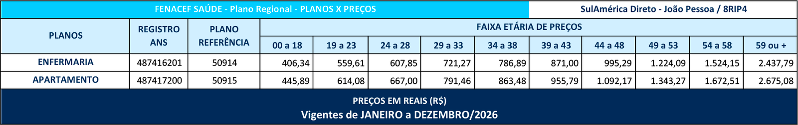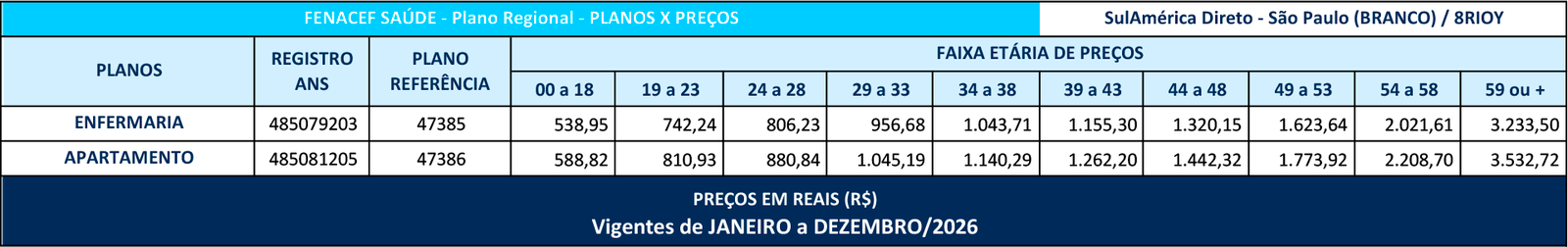 Os Produtos de Saúde e Odontológicos disponibilizados pelo FENACEF SAÚDE aos seus Associados são contratados junto à SulAmérica, na modalidade COLETIVOS POR ADESÃO, enquadrados na Lei dos Planos de Saúde (9656/98) e devidamente registrados na ANS – Agência Nacional de Saúde Suplementar.